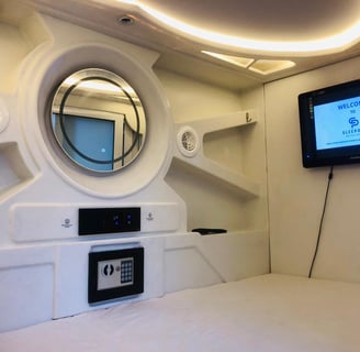 Discover Global Fibrotech's capsule sleeping pods, designed for ultimate comfort and privacy in bustling public spaces. Experience the future of urban infrastructure with our 100% Made in India solutions.